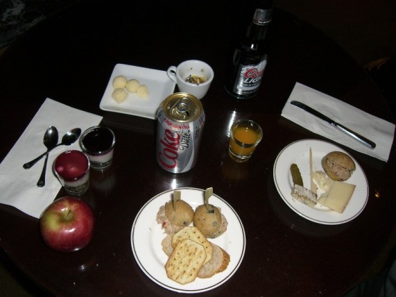 Yogurt is one of my favourite foods, so that combined with the crackers was just fine with me. Actually, I had about three of the little yogurt shots, which were in shot glasses. They were so good – I became quite sad when the staff personage came in and said she was taking the food away and would soon bring in the desserts. I begged her not to take the remaining shots away, and out of pity, she allowed them to remain. I’m sure she was quite happy to see that none of them went to waste!: