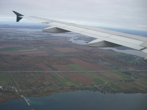 We eventually went outside and down Saint Catherine Street, where most of the shops are. Again, we went in plenty of stores, but all I bought were some sport bras and Chuck bought a Reuben sandwich from Reuben’s Deli. He got it to go as it was time to head back to the airport for our 5:45 flight. The cab ride to the airport was dreadful. It was gridlock – start and stop, cutting in and out – I felt extremely car sick by the end of the drive. At the airport, Chuck sat and ate the sandwich while I wandered into a few stores, trying to distract myself from the nausea. There was quite a long line up for security. When we got up to the front of the line, the officer made the announcement about having to separate your mascara, gels, etc. I loudly told Chuck that he forgot to put his mascara in a separate bag! His hair gel too! It caused a few smiles, for a second anyway.