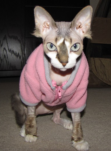 My one kitty seemed a little chilly the other day, so I got her sweater out:
