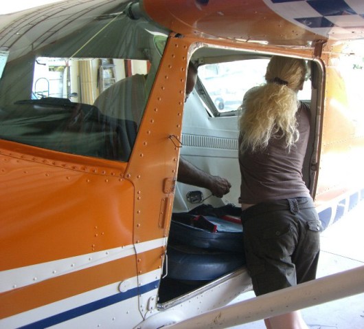 I received the plastic panels for the interior of my plane yesterday. My mother and I drove over to the airport to stick them in the plane. I was quite happy to see my mechanic there, since he’s the one performing Vyctor’s plastic surgery. He allowed us to load up the panels in his truck, and arranged for me to fly out to his place the next day. Despite the wind, we went for a brief flight. My mother nagged the whole time, telling me to stop making the plane bounce from the wind and air pockets.