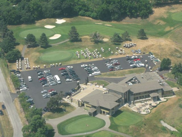 I flew over two charity golf tournaments over the last couple of days. The first one was for the MS Society, down in Port Colborne. I wasn’t sure if I was going to be able to fly, due to the hazy conditions and low clouds. Fortunately, the sky was perfectly clear over the golf course: