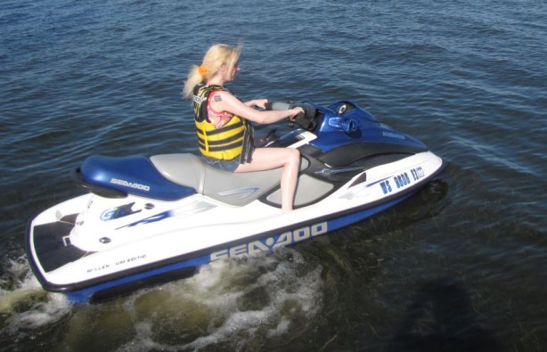 I had a total blast! I thought he was kidding when we arrived back at the dock and he asked if I wanted to drive. I was a little hesitant, but thought it would be fine with him on the back. I scooched up front and asked him when he was climbing back on. He just laughed and said “I’m not going!” What the heck! I almost chickened out but knew I would regret it forever. After a quick lesson, I headed out into the wild blue yonder, all by my lonesome: