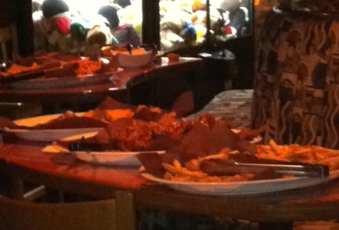 My cousin and I were still a little hungry, so I decided to discretely sneak over to the food and grab a small handful before running back to my seat. Not sure if anyone noticed me – that time. Here I am nomming a stolen fry: