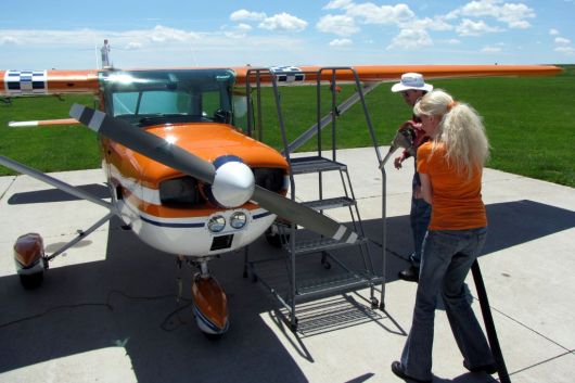 They were a little behind with the draw, so we were worried that we would have to leave much later than expected to head home. On a bright note, we won a few of the first twelve prizes, as we had quite a few numbers on our cards. I was so excited that Mike won the air to air photography. He said I could have it to get some sassy pictures of my plane. I’m so excited – thanks again! We also won $100 worth of personalized business cards and two Emergency Locator Transmitter recertification certificates (needs to be done once a year and costs about $80). Yea! The most we could win was four prizes, so there was no point in sticking around. It was really nice to chat with the fellow pilots though, some of whom we met at previous airports.