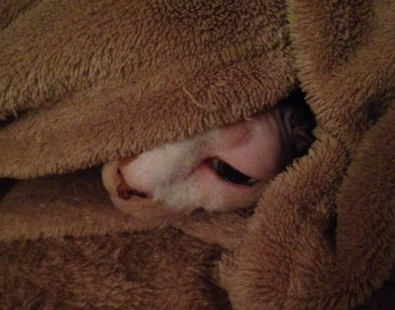 Speaking of recovering, Boo is a monkey and was frantically running around the apartment for over an hour. Looks like she wore herself out: