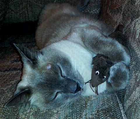 Cute and felt so fluffy. Speaking of which, Mike just sent me this adorable pic of one of his “weird, furred” kitties, sleeping with his friend: