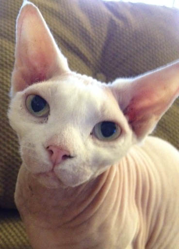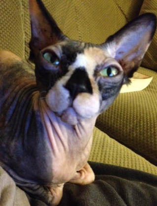 While at a pet store yesterday, I saw this oddity. It’s a cat WITH fur: