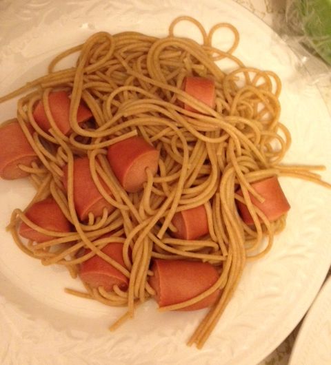 Nothing more appetizing than cake, a nanaimo bar, cheesecake, mashed potatoes and a noodle!