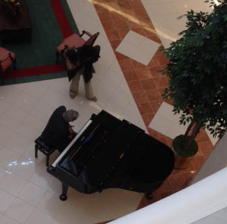 After breakkie, we went over to Eastview Mall. This one has a few higher end stores, such as Von Maur. Kinda like a Nordstroms. In the space in front of the store was high end furniture people could chill on, which surrounded a huge four-sided fireplace. We knew we were going to look like a pair of country bumpkins going in there, however we decided to have a peek. We couldn’t even count how many christmas trees were all over the store, plus they had a pianist. This is the view from the second floor: