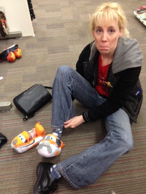 On Saturday, we figured out which big box stores we would hit before heading home. I still wanted to find the Disney Planes Dusty slippers I saw online. I was hoping I could manage to get my size 8 feet into the largest boys size they had, but I was sorely disappointed: