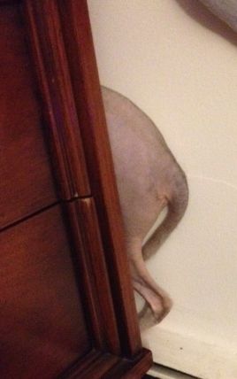 Oh and this weekend we went to the mall and Mike was trying on some pants. I “accidentally” moved a cart in front of his fitting room door: