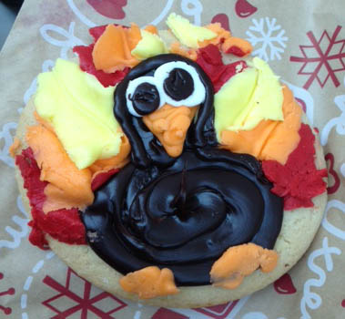 After all of the excitement of the new clothes, we decided to get a couple cookies to boost our sugar. How cute is this?