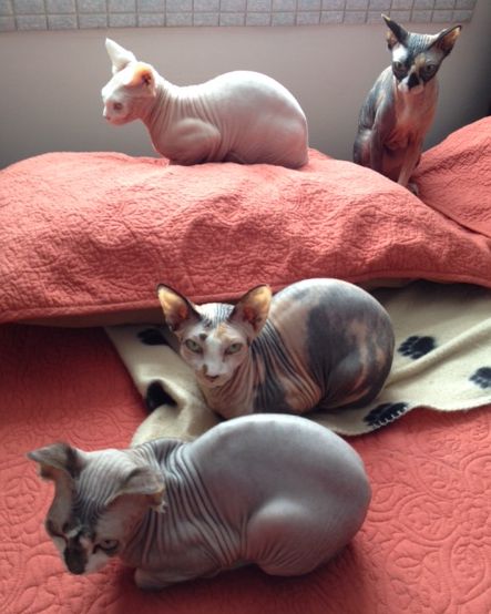 Yesterday I walked into my bedroom yesterday and got a rare photo of all four kitties sitting fairly close together: