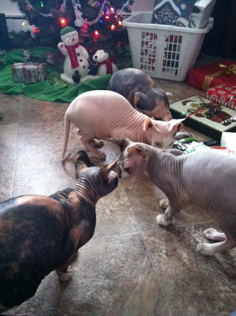 The kitties enjoyed the treats Jan bought them:
