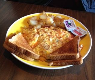 They had a great DJ and entertainer there, Robert (I think he said Tanis, but I could be mistaken – my bad!) Good times. I had pizza and Mike ordered this awesome omelette: