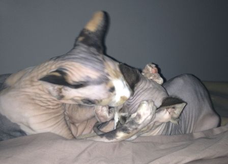 That night while I was laying in bed, watching TV with the lights out, I looked over and saw this adorable scene between Boo and Mya: