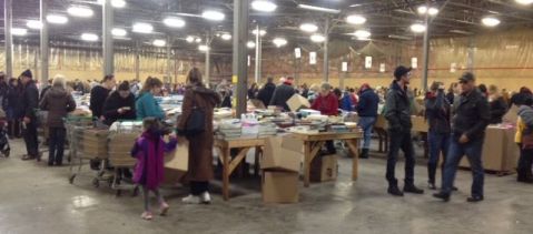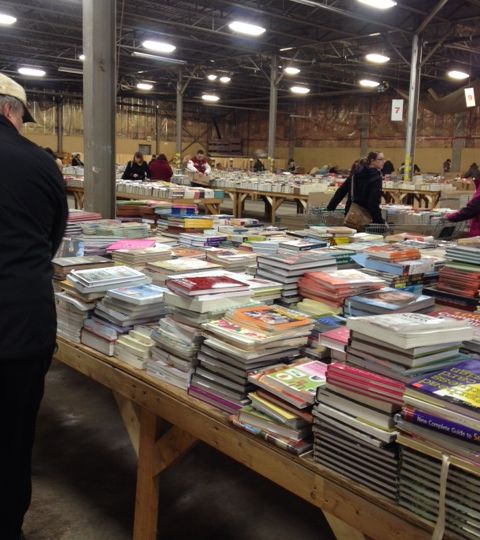 On Thursday, Mike and I went to the huge box sale at the Book Outlet. I typically go each year and never have any trouble filling a box. I didn’t want to get too many this time as I still have tons to read. Mike and I just split a box between us. We were there right for when it opened at 9:00 and it was pretty much packed within an hour: