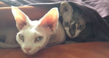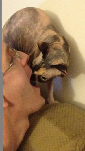 Back at home after the flight, we chilled out and watched a couple movies with the kitties. Mike got himself a drink of water and mistakenly left it unattended. Everyone except Boo had a slurp: