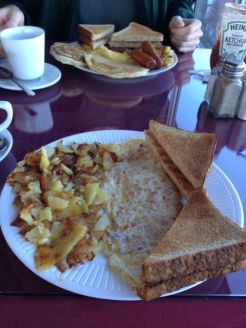 We had a great view of the runway while in the restaurant eating our tasty breakfast. Unfortunately, Mike’s order was wrong so we nommed on my breakkie before his came out quite some time later. Oh, and I couldn’t find Donkay so this was his replacement for the flight:
