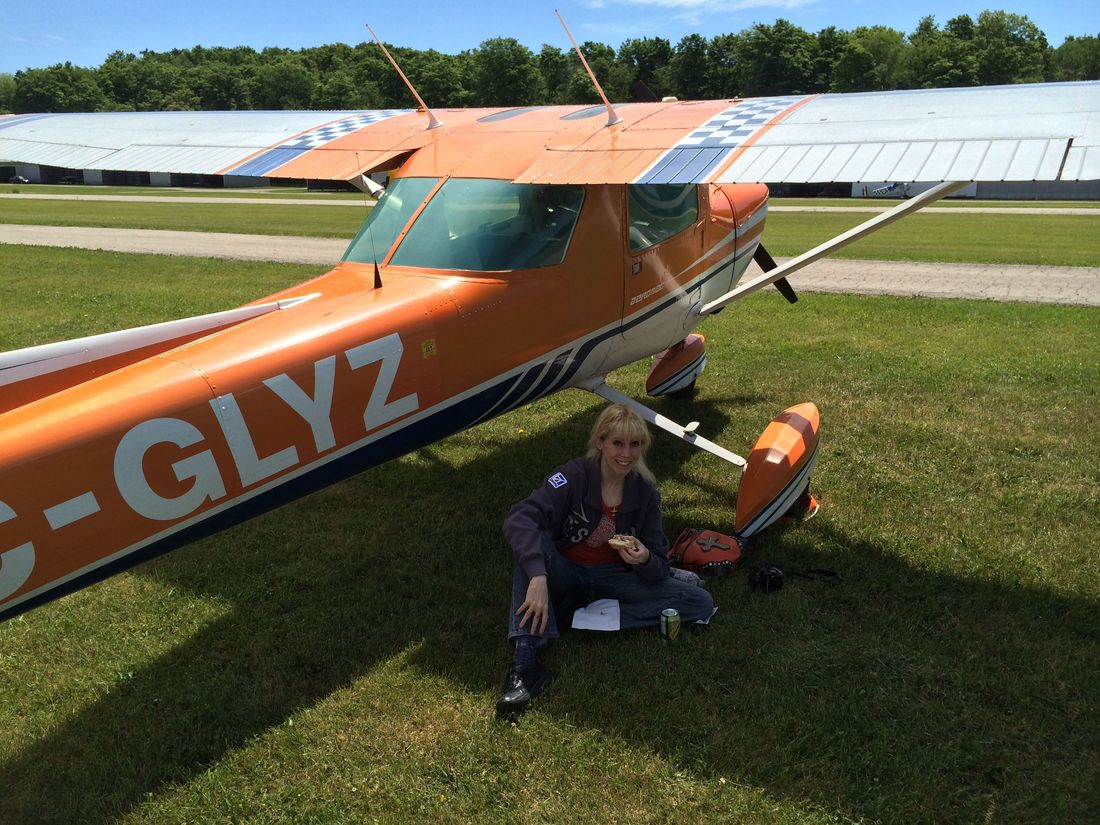 On Sunday, we went to a fly-in at the Guelph Airport. I don’t know why I have never flown there before. Anyway, we had to fly to Welland first to get fuel as the fuel truck in St. Catharines was out of service. After a quick stop, we headed west to Guelph. There is no tower there so you basically talk to the other planes in the area, tell them where you are and where you’re going. I got into the circuit and turned the base leg. I noticed there was a plane at the threshold of the runway, ready for take off. Lots of time since I still had to turn final. Well, I did turn final and dude was still there. I announced twice that I was on final, plus there was another plane behind me. I started doing some S turns to give the guy time to take off. I could no believe he sat there that long. I thought I was going to have to overshoot the runway, but was also thinking that clearly this guy wasn’t too bright, so what if I declare an overshoot and he still takes off? Fortunately, he finally took off and I was able to land safe and sound. I got off the runway onto the taxiway as soon as possible (as you’re supposed to do). Apparently the guy behind me kept going all the way to the end of the runway once he landed. The guy behind him therefore would not be able to land on a clear runway so he did an overshoot. He was quite ticked off as he radioed the plane that caused him to overshoot and yelled to get off the runway next time. Geesh! I was quite glad to get parked after that:
