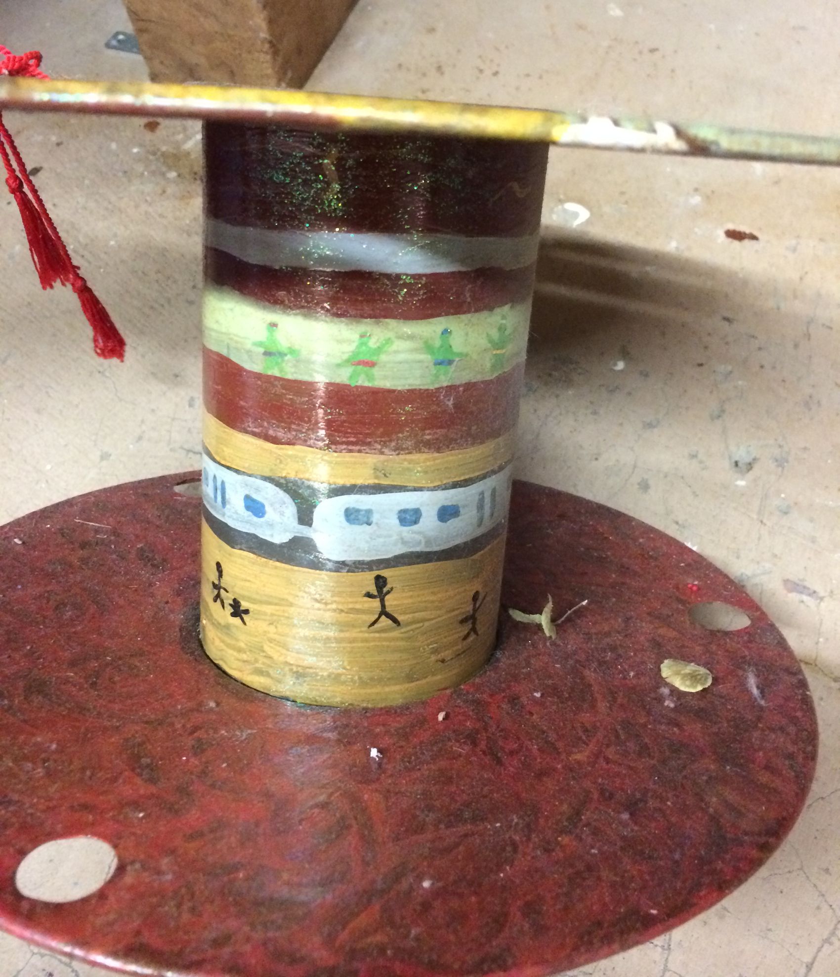 I had the day off yesterday, and since I’m finally feeling better, I went over to my little mother’s house to help sort things in the basement. Every time we clean it out, we get rid of a fair amount of stuff and can never imagine being able to get rid of much more in the future. Well, yet another big pile cleared out yesterday. Her basement is starting to look very bare. One of the things I did come across (and toss) was this nifty drum I made in high school for a project: