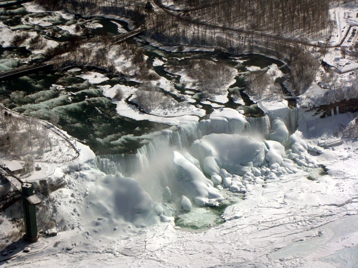 Before heading back to St. Catharines, we flew over the rather chilly looking Niagara Falls: