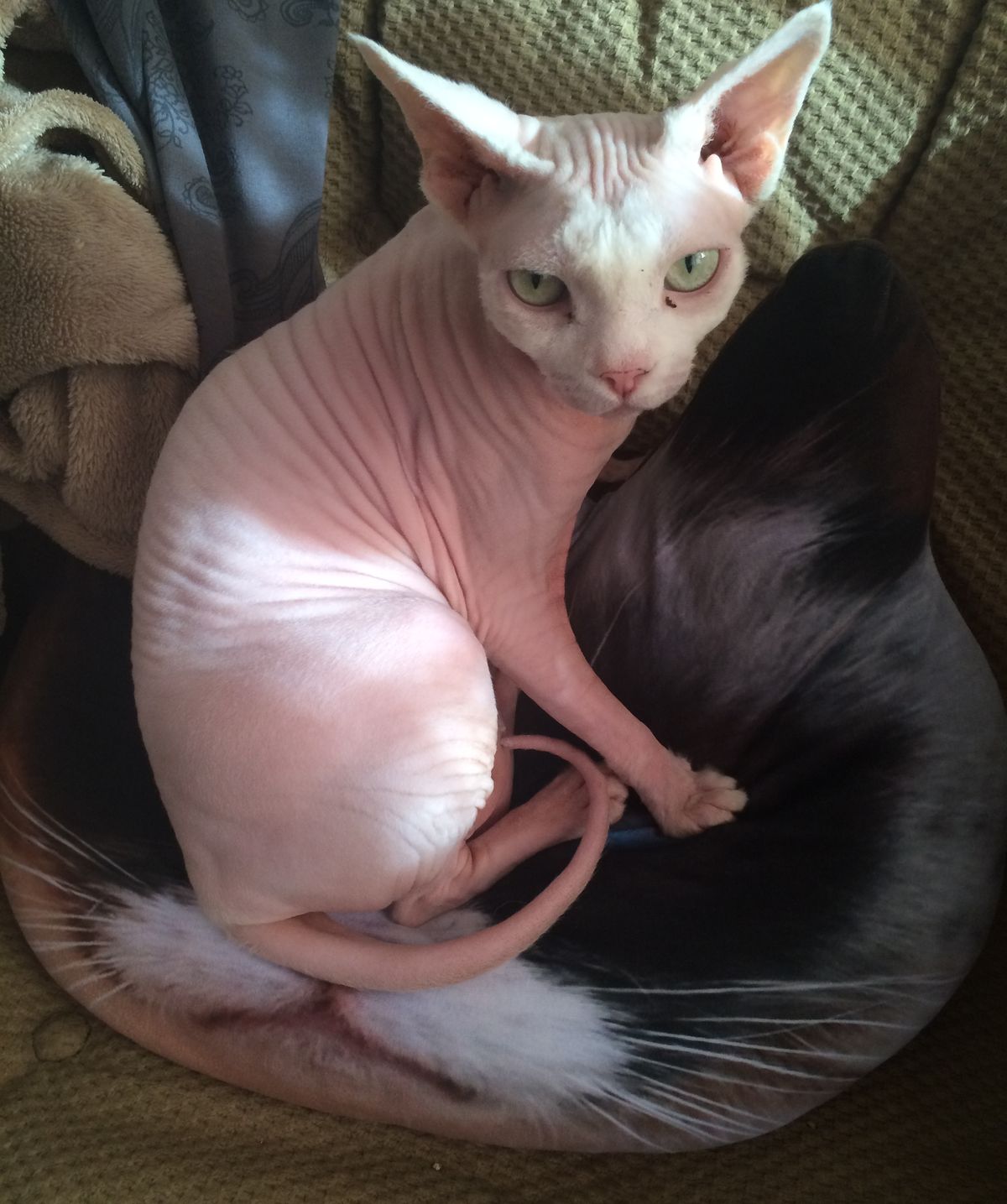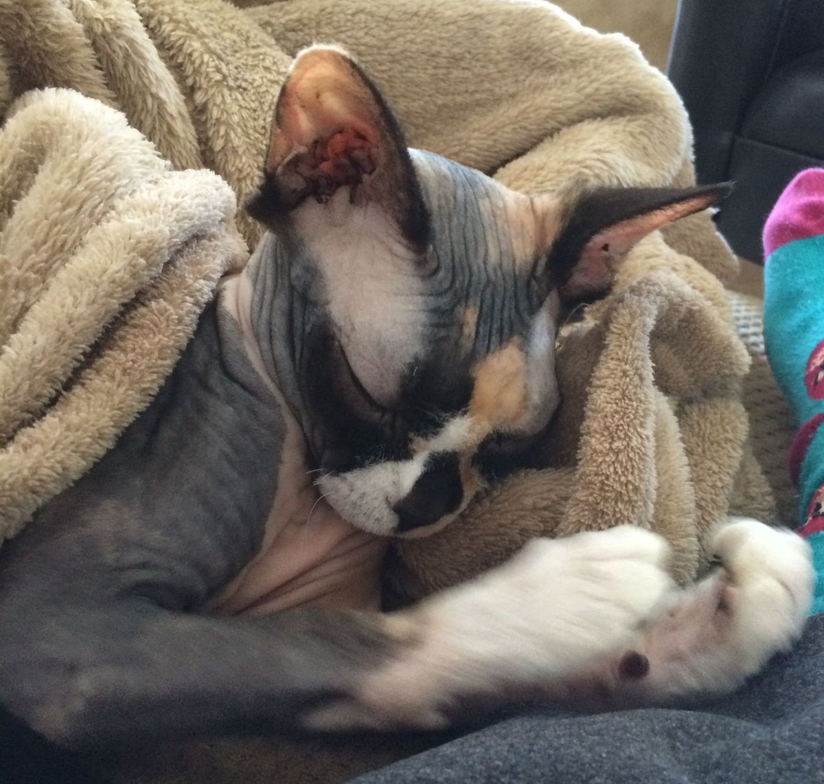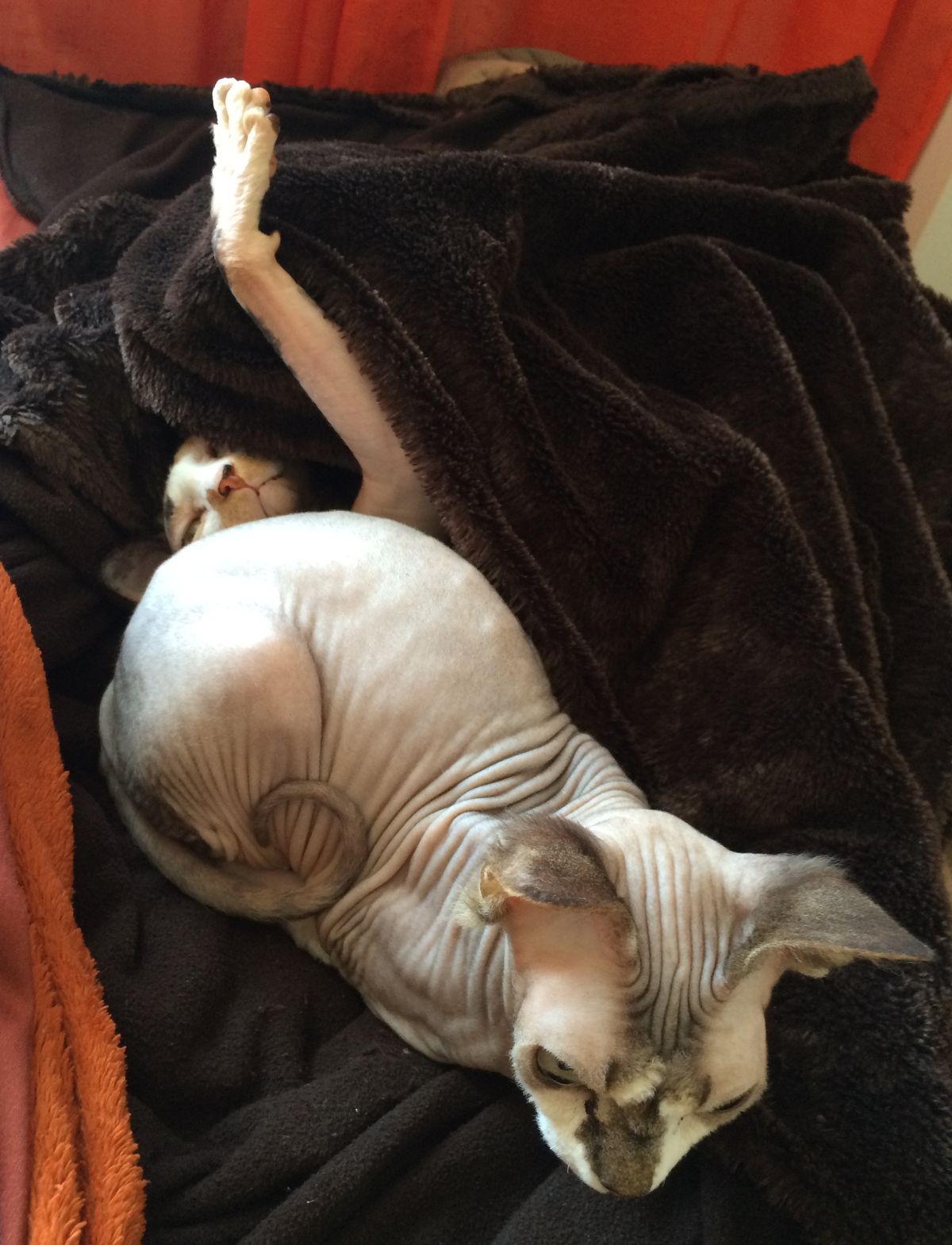 Boo has been a bit of a klutz lately. She fell off the bed twice in the last few days and just a couple hours ago, she rolled over in her sleep. This is how she ended up: