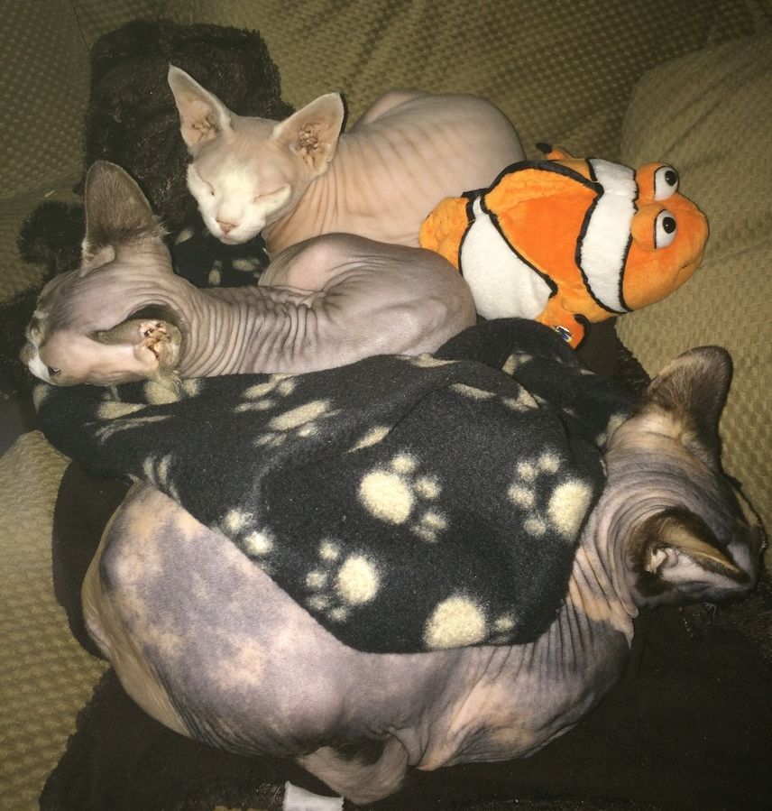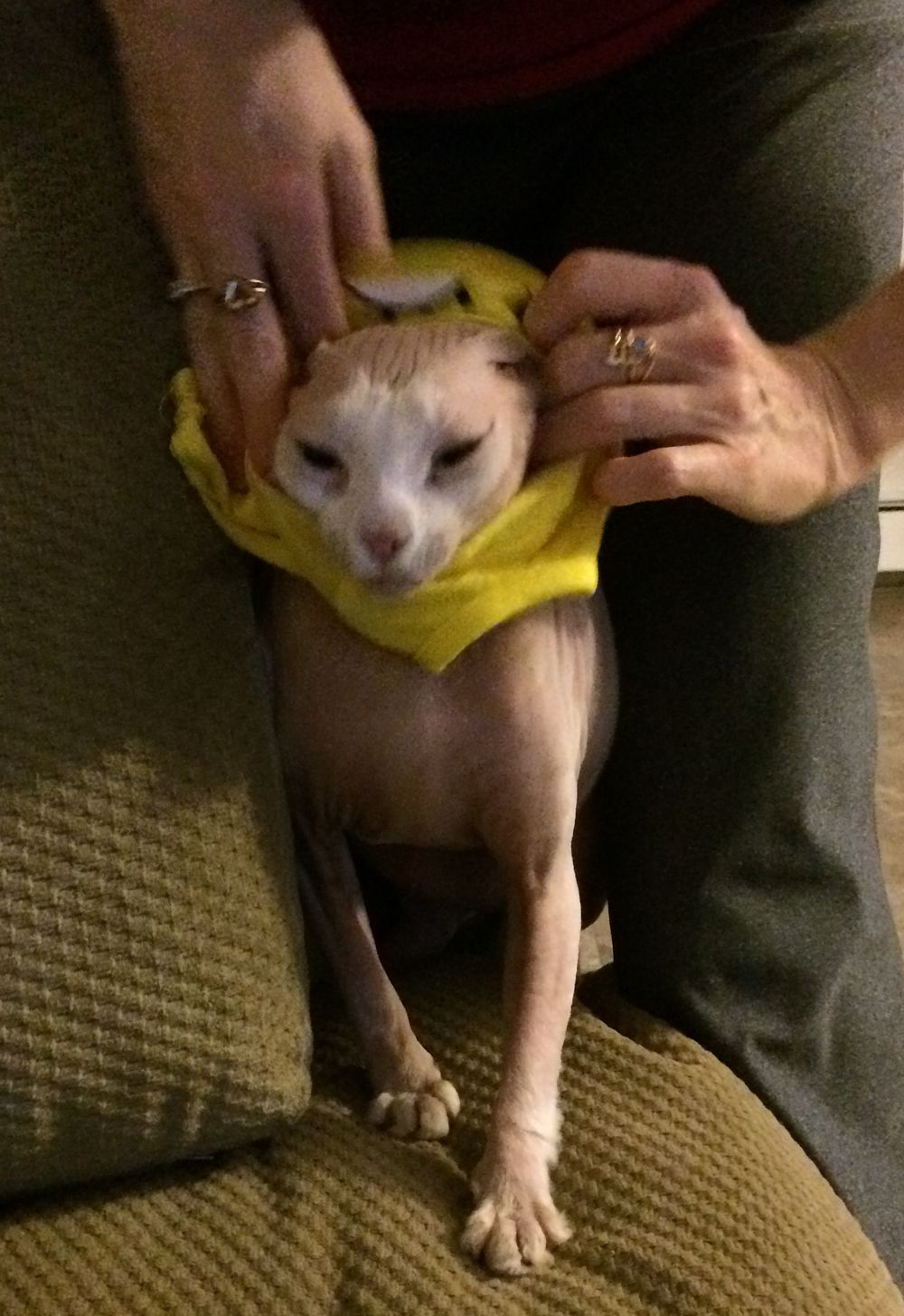 I was surprised he stayed so still while it was on him. I’m sure Peanut warned him that it was going to happen and to just suck it up and get it over with. After the pics were taken, Zim wandered over to see a couple of his sisters: