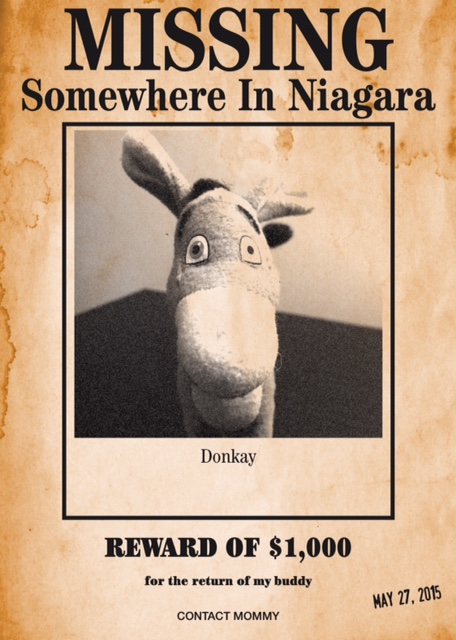 There was almost a complete travesty this past weekend. I lost Donkay! It was horrible – I ended up searching every square inch of my apartment for almost three hours, but to no avail. I was just about to put these up across Niagara: