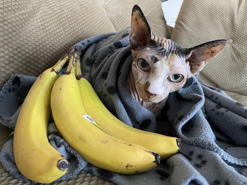 Boo can be so photogenic at times, as she is here posing with some bananas: