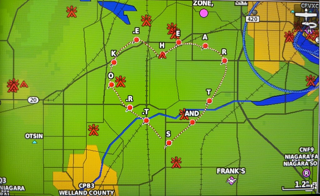 We then flew a heart-shaped pattern over Niagara. I plotted the flight out first on my GPS, and the way points spelled HEART AND STROKE: