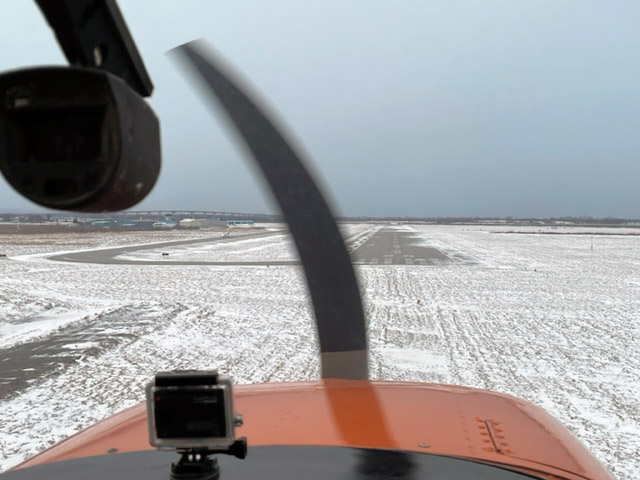 Within fifteen minutes of being airborne, the two Club planes had landed and the snow had come up to the edges of the Niagara District Airport airspace on both the west and south sides. Needless to say, at this point we were forced to head in for a gusty landing: