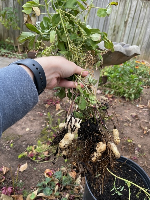 Earlier in the summer, I found a peanut in our back yard, which was split open and had a root. I planted it and just dug up the spoils today. I’m going to start a new business selling peanuts, grown at the Elizaplantation! With a yield like this, I’ll be rich in no time!