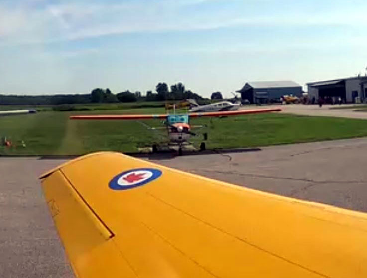 The winds were quite high and the clouds were around 3,500 feet. We headed north at 2,500 and arrived at Collingwood Airport after flying for fifty minutes. I ran into some folks I knew from the 99’s and provided them with a “first plane to arrive” dance. Quite the roll we were on as we headed to the final airport, Edenvale, ten minutes away. It was nice to be the first to arrive at all of the airports we checked into! There were a lot of late starts because of the high winds, which fortunately died down a bit in the afternoon.